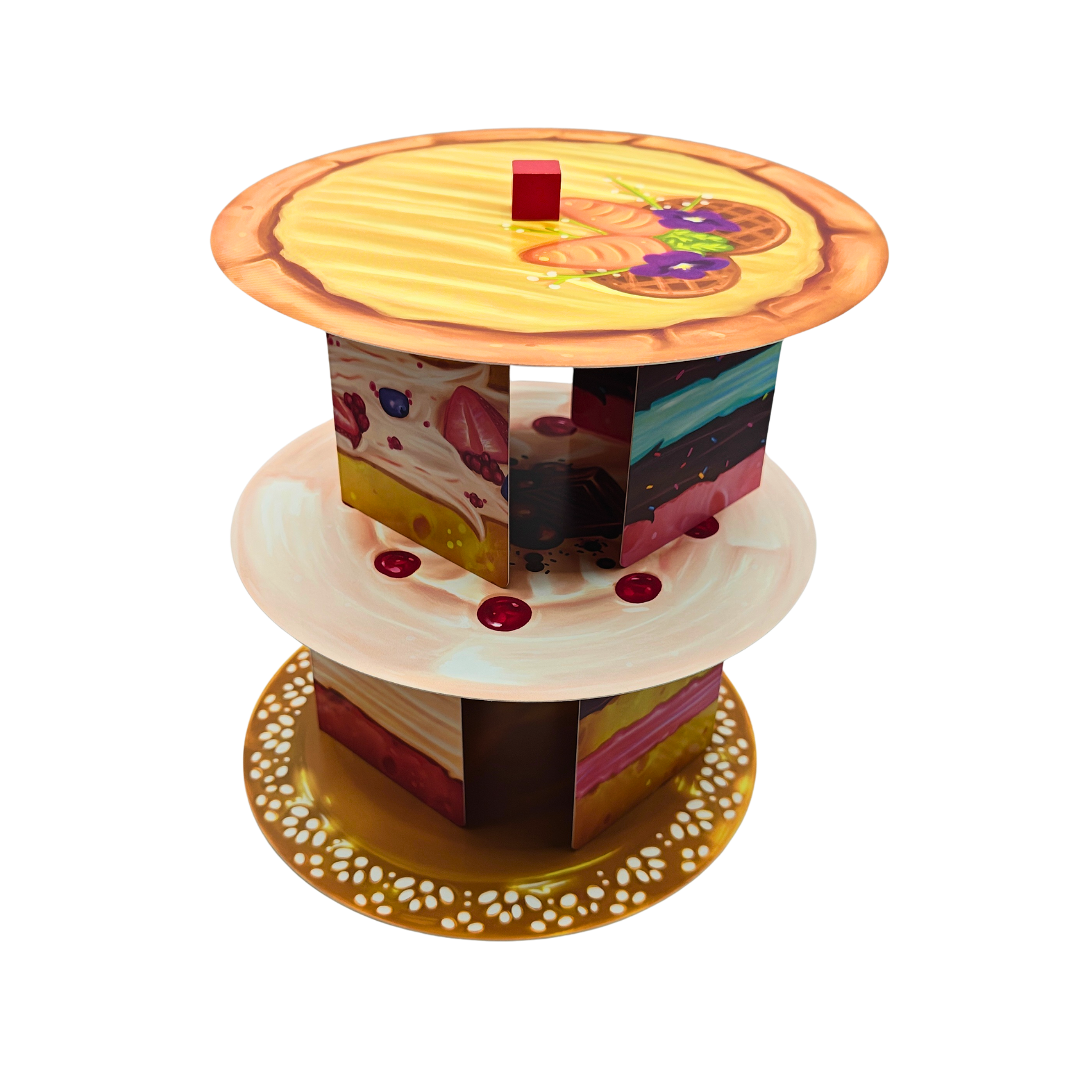 Cakes! es un divertidísimo juego para toda la familia donde los jugadores deberán mostrar su habilidad, pulso y equilibrio montando pisos de tortas en una bandeja.