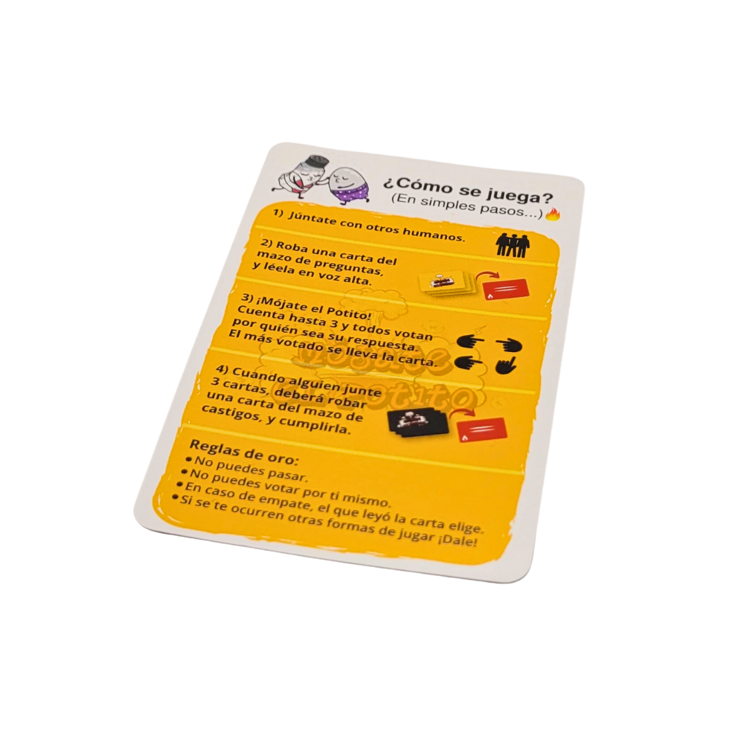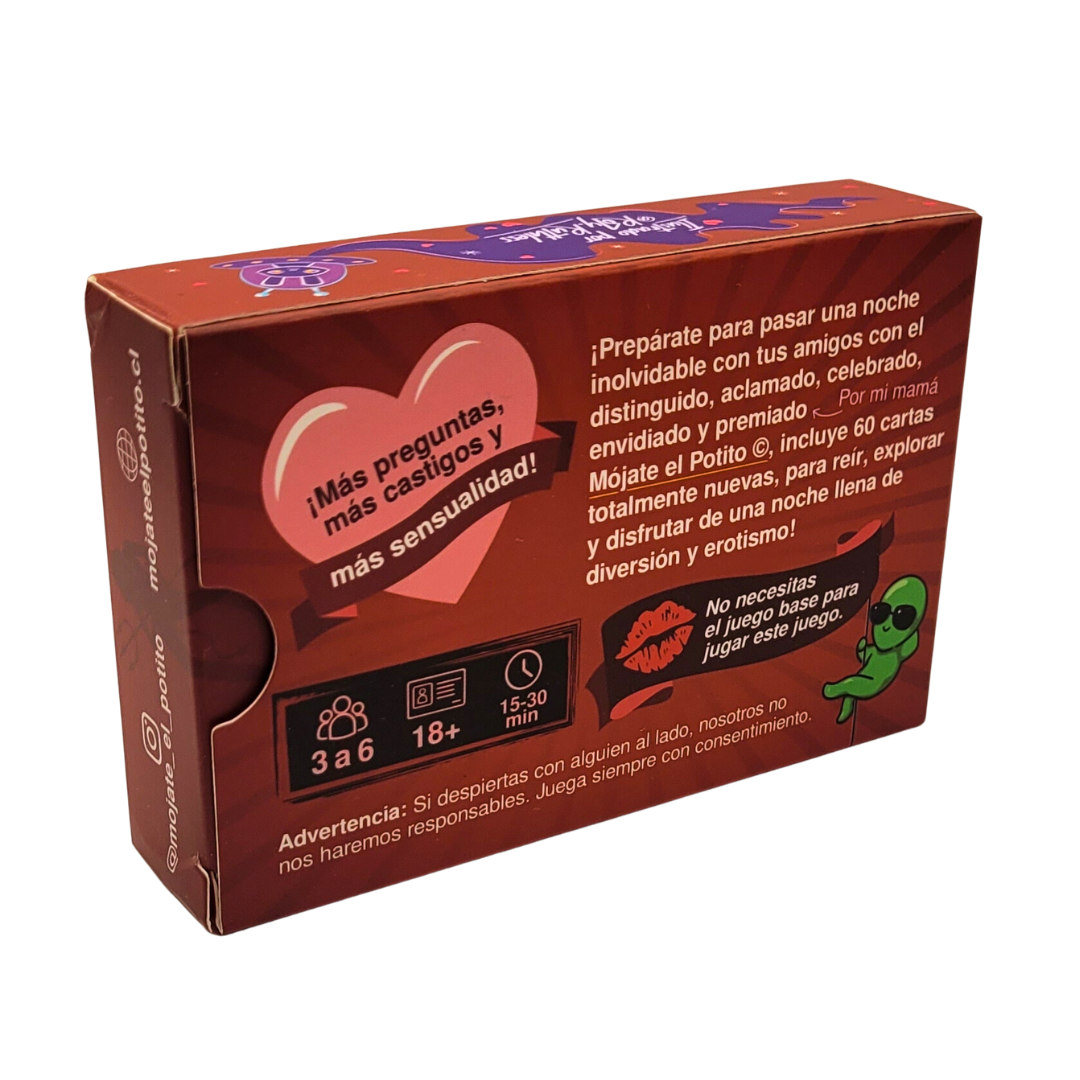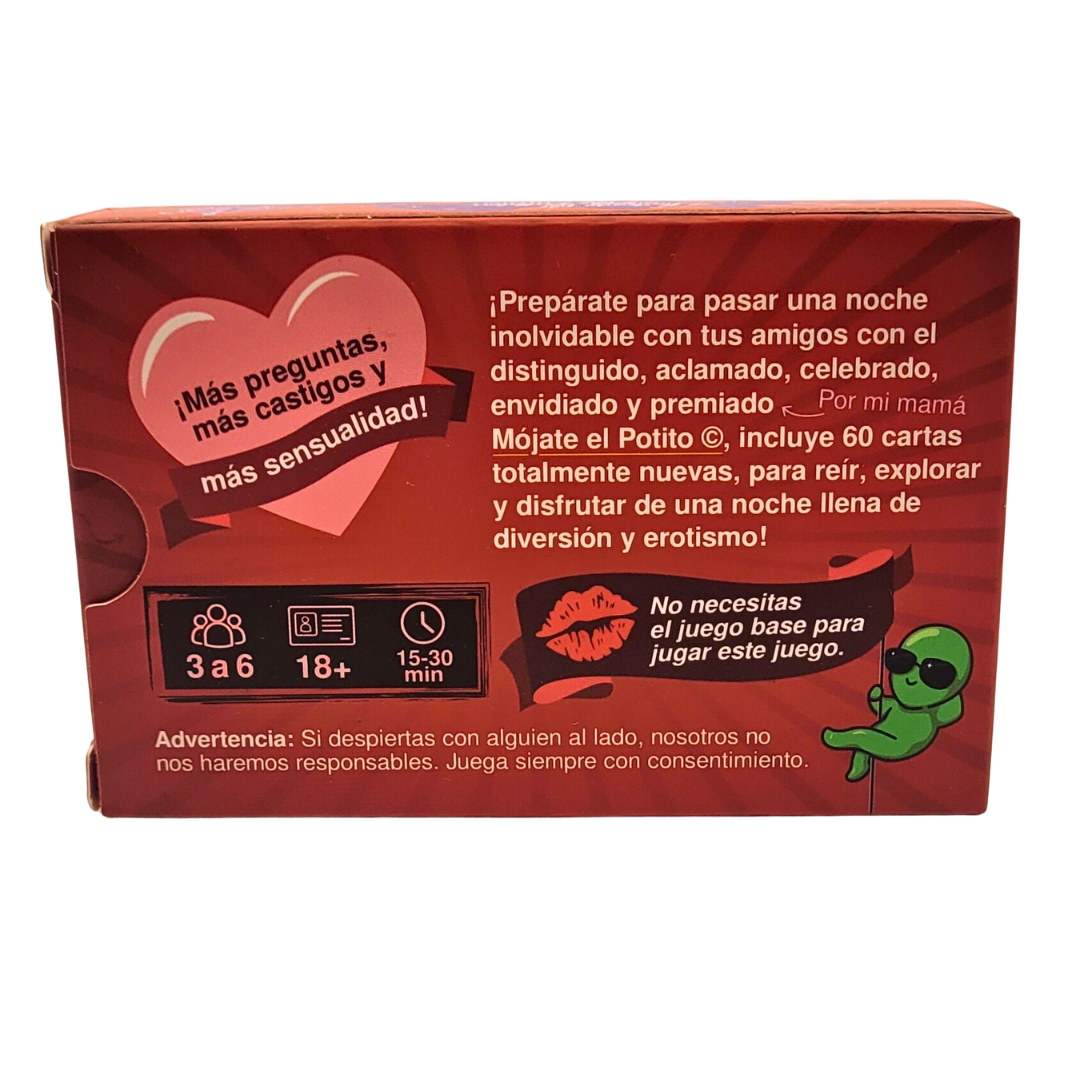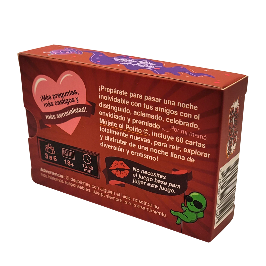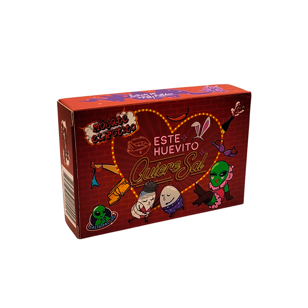 Este Huevito Quiere Sal es la segunda expansión del aclamado y ultra hiper mega reconocido Mójate el Potito. En esta expansión pondrás a prueba a tus amigos con chistosas preguntas, y la nueva mecánica de Desafios MEP. . . . "También se puede jugar sin el Juego Base" . . . El juego de 62 cartas contiene: .
