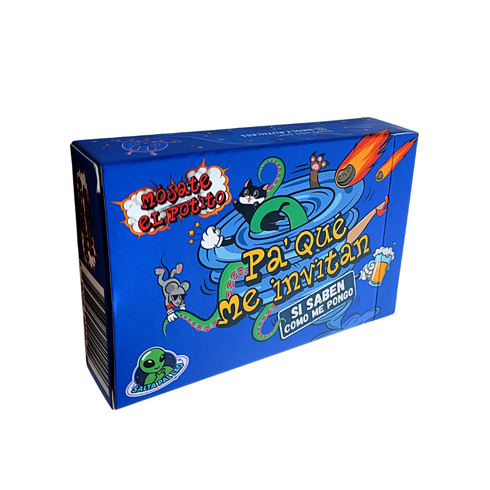 Pa'Qué Me Invitan es la primera expansión del aclamado y ultra hiper mega reconocido Mójate el Potito. En esta expansión pondrás a prueba a tus amigos con chistosas preguntas, y la nueva mecánica de mini juegos Momento MEP. . . . "También se puede jugar sin el Juego Base" . . . El juego de 62 cartas contiene: