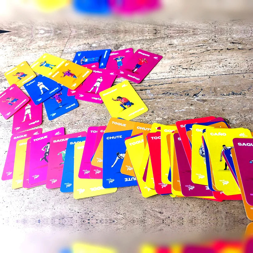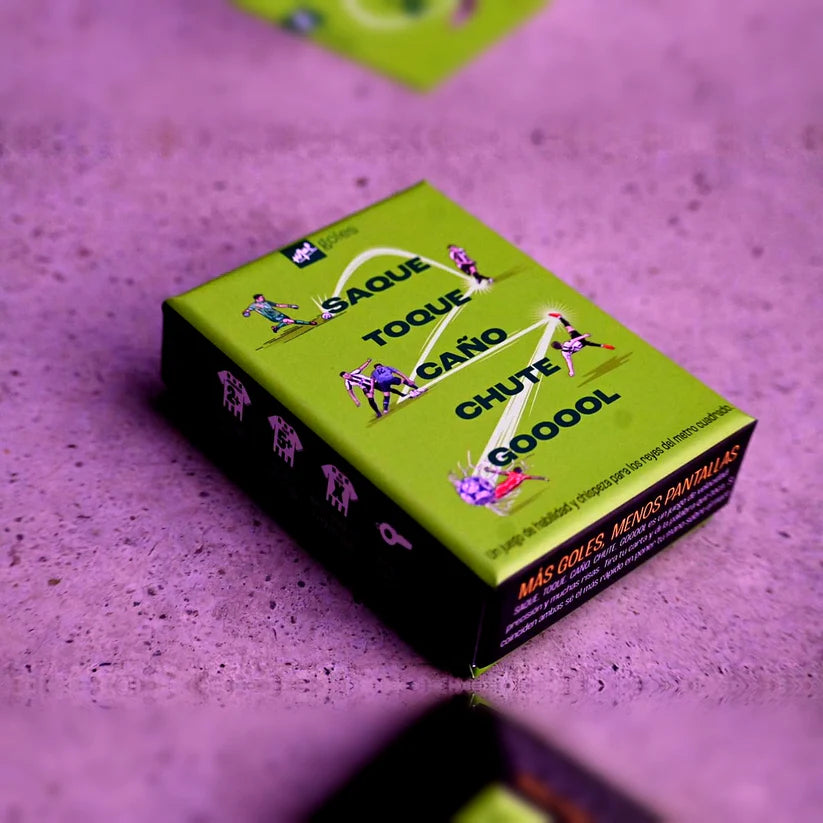 El más rápido gana… y el más lento se lleva todas las cartas. Ideal para jugar en familia, con amigos o en cualquier previa futbolera, "Saque Toque Caño Chute Gol" combina humor, memoria y velocidad en partidas cortas, intensas y llenas de risas.