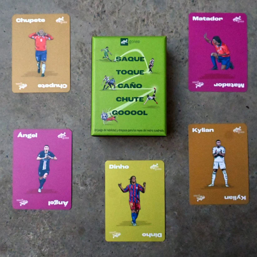 "Saque Toque Caño Chute Gol" es un juego de mesa de fútbol vertiginoso, entretenido y lleno de adrenalina, donde la rapidez mental y los reflejos lo son todo. Los jugadores deberán estar siempre atentos, diciendo la secuencia correcta —“saque, toque, caño, chute, gol”— y reaccionando justo a tiempo cuando la carta coincide con la palabra.